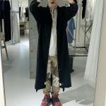 工藤:黒の方が見た目的に落ち着いた雰囲気になるのと、ロング丈なのでシルエットがキレイになるかとおもいます。ではまず、黒のサンプルを着ていただきますね。