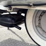 ▲リアの足回り。こちらももちろん片持ち式。万一のパンクの際などでも簡単にタイヤを交換できます