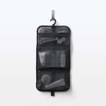 フックに掛けて使うとき以外は3つ折りにしてコンパクトに。バックルで留められるので荷物が外に出てしまうこともありません。トイレタリーは後回しになりがちですが、あるとないとでは大違い。旅行先や機内での快適度が格段にアップするはずです。水はけの良いメッシュ素材なのも好ポイント。