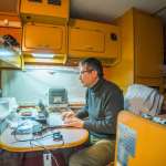 当時は電気も復旧していなかったため、ヤマハ発動機から発電機も借りて一緒に貸し出したとのこと。コンビニエンスストアの駐車場だった場所に設置して、災害支援活動の拠点となりました。車内では宿泊や休憩のほか、事務仕事なども行えるため事務所のような機能を果たしていたとのことです。