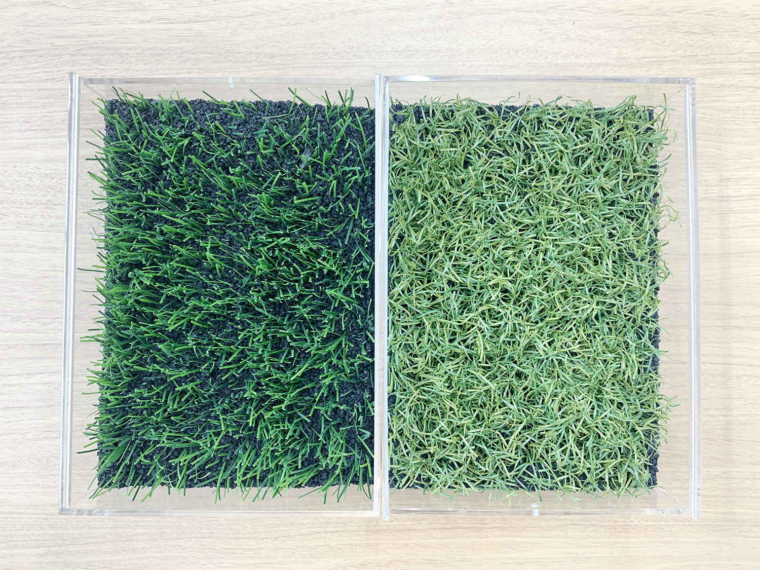 ▲コチラが一般的に使用される人工芝で、直毛型のロングパイル(芝葉)が特徴