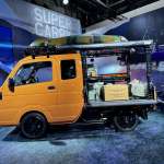 ▲スズキ「スーパーキャリイWORK & PLAY PRO」は大型ワークキャリアや背面拡張棚など「ハードカーゴ」製の多彩なギアを装備したショーモデル