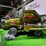 ▲「ハイゼット・トラックPTOダンプ大発命(ダイハツメイ)」は「面白いもので笑顔を作りたい」(ダイハツのデザイナー)というコンセプトで作られた全長3.3mのアートトラックコンセプト