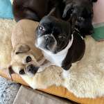 ▲上がココ、右下が小春、左下がブウ。初めて迎え入れた保護犬がフレンチ・ブルドッグの小春。奥様が主催する保護犬の譲渡会『WOLF LADY』のアイコンにもなっているが、2025年3月に天国へと旅立った