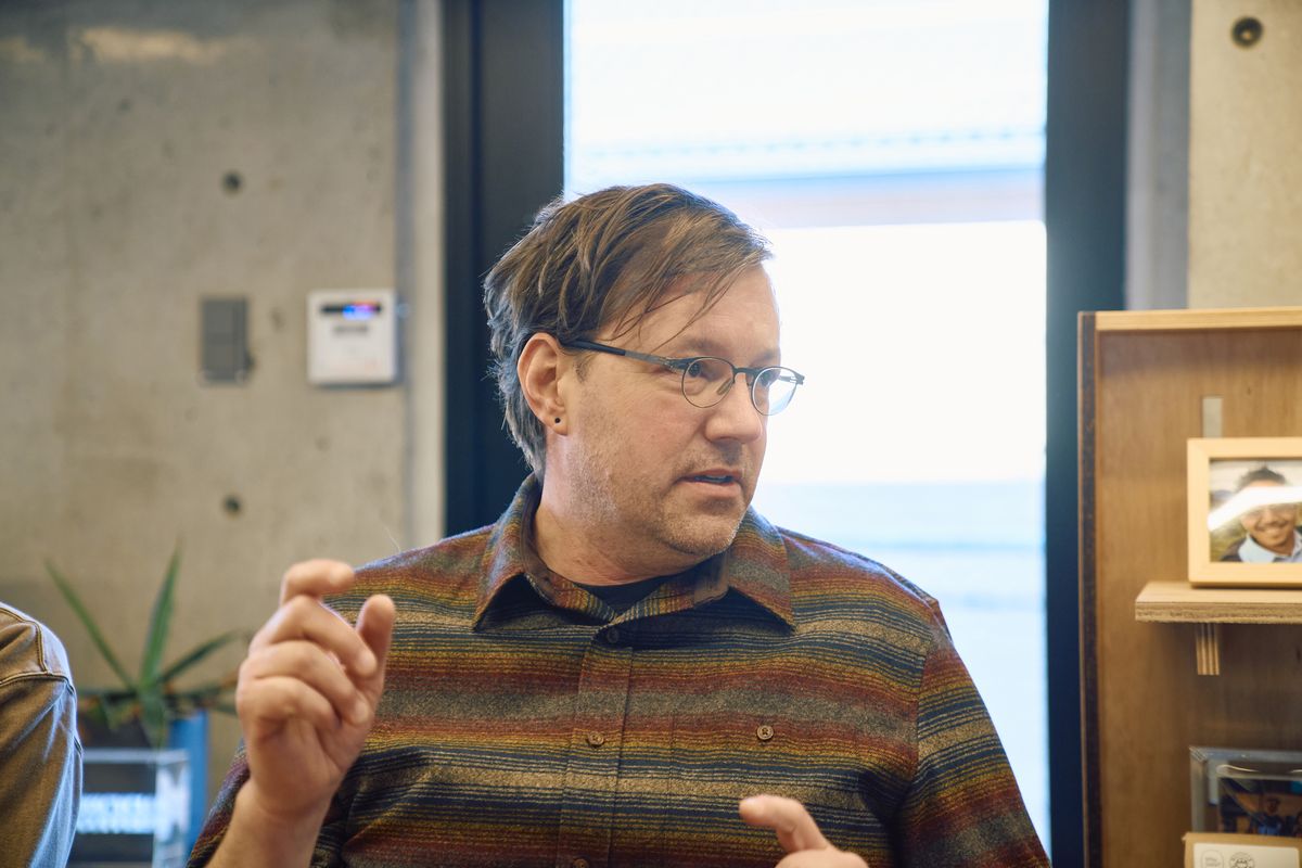 「サンウエストの社長とは、互いの共通の知人を通じて知り合いました。最初に“サンプルを送るので製品を確認してほしい”と伝えたところ、わざわざ日本からモンタナにやって来てくれました。製品はもちろん、デザインルームで働いている人、使っているミシンなどにも関心を示してくれたことに感激。いいパートナーになれそうだと感じたことを今も覚えています」(ケビン)