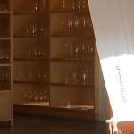 ▲直営店の2階にある黒を基調としたプロ向けのショールーム。取り扱う全1800種類のグラスが美しく並ぶ様子は圧巻