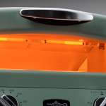 ▲ストーブでもおなじみのカラー、ホワイトとグリーン。ピザ釜をイメージさせる上部のカーブや小窓、調整のつまみでレトロ感のあるおしゃれなデザイン