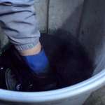 この染め工程では効率と仕上がりの両立が図られています。「一般的には革を水で濡らしてから染めることが多いのですが、ウチでは乾いた状態から50度のお湯で染めています。吸い込みが良くなることで作業時間を短縮でき、仕上がりも安定します」と製品染めを担当する伊藤さんは言います。