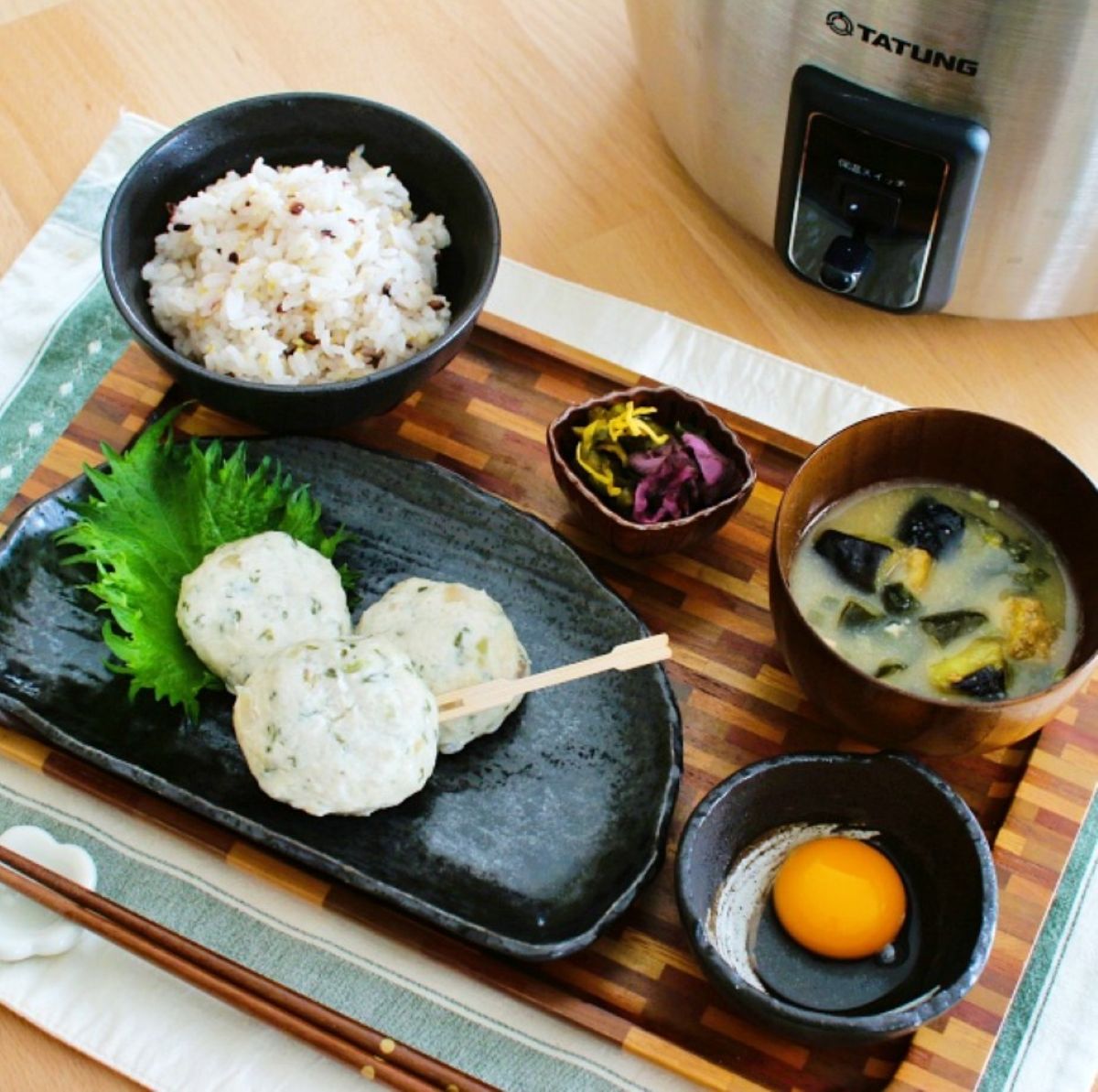 ▲雑穀米の炊飯とつくねが同時に完成。スチームプレートに鶏胸肉や野菜をのせておけば温サラダも簡単