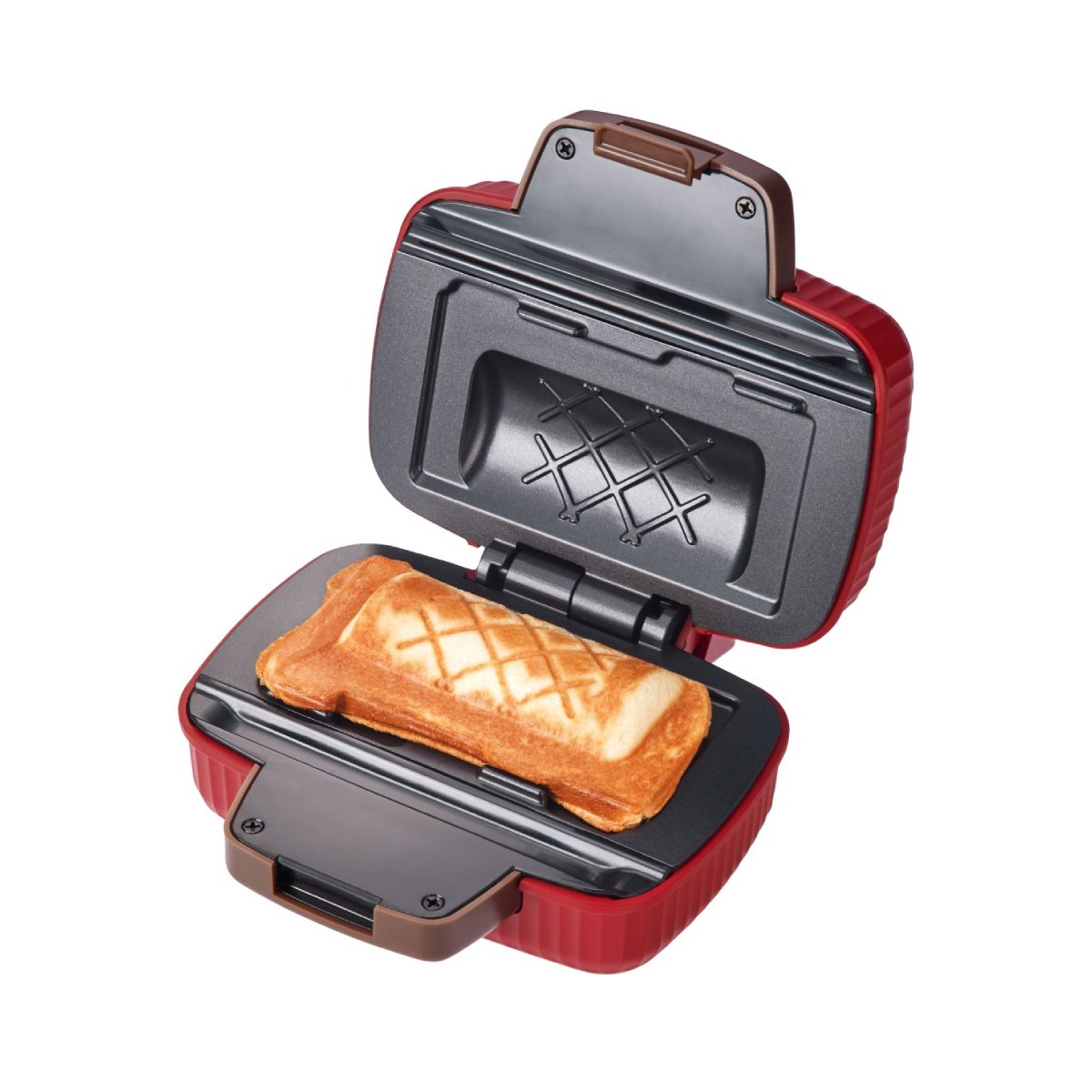 ホットサンド以外に、ホットケーキミックス×チーズでチーズドックや、ご飯をサンドして焼きおにぎり風など、アレンジも自由自在。自立収納に対応し、どこに置いてもサマになるレトロでポップなデザインです。