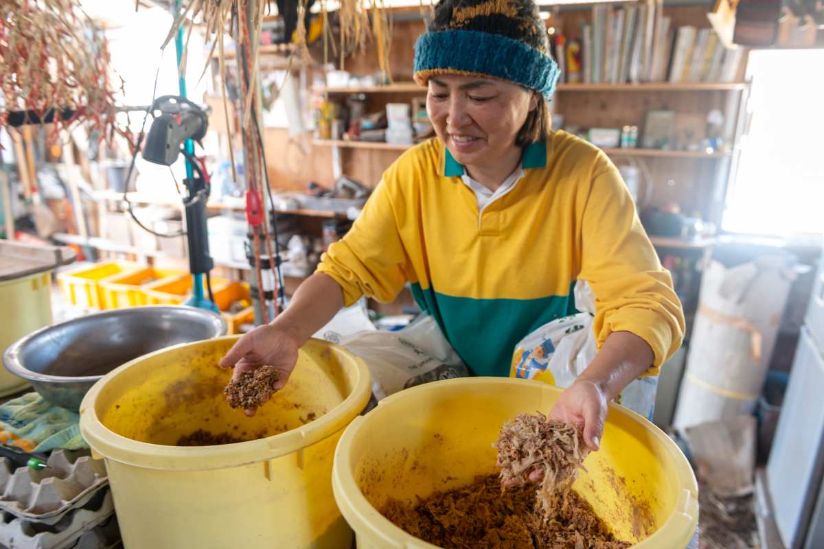 ▲エサとなるお蕎麦屋さんの「出し殻」やお豆腐屋さんの「おから」を地元のお店からいただき、リサイクル。この地域ならではの交流も生まれる