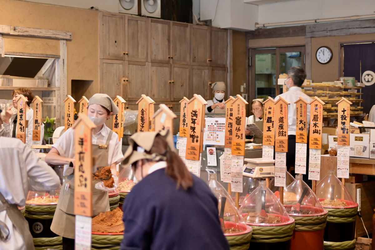 「こちらの本店には70種類以上を揃えていますが、どれも味わいが異なります。例えば、お豆腐とわかめのお味噌汁を作っても、今日は白味噌、明日は赤味噌、明後日は麦味噌……と変えるだけで、同じ具材でもまったく別の味わいになるんですよ」(佐野さん、以下同)