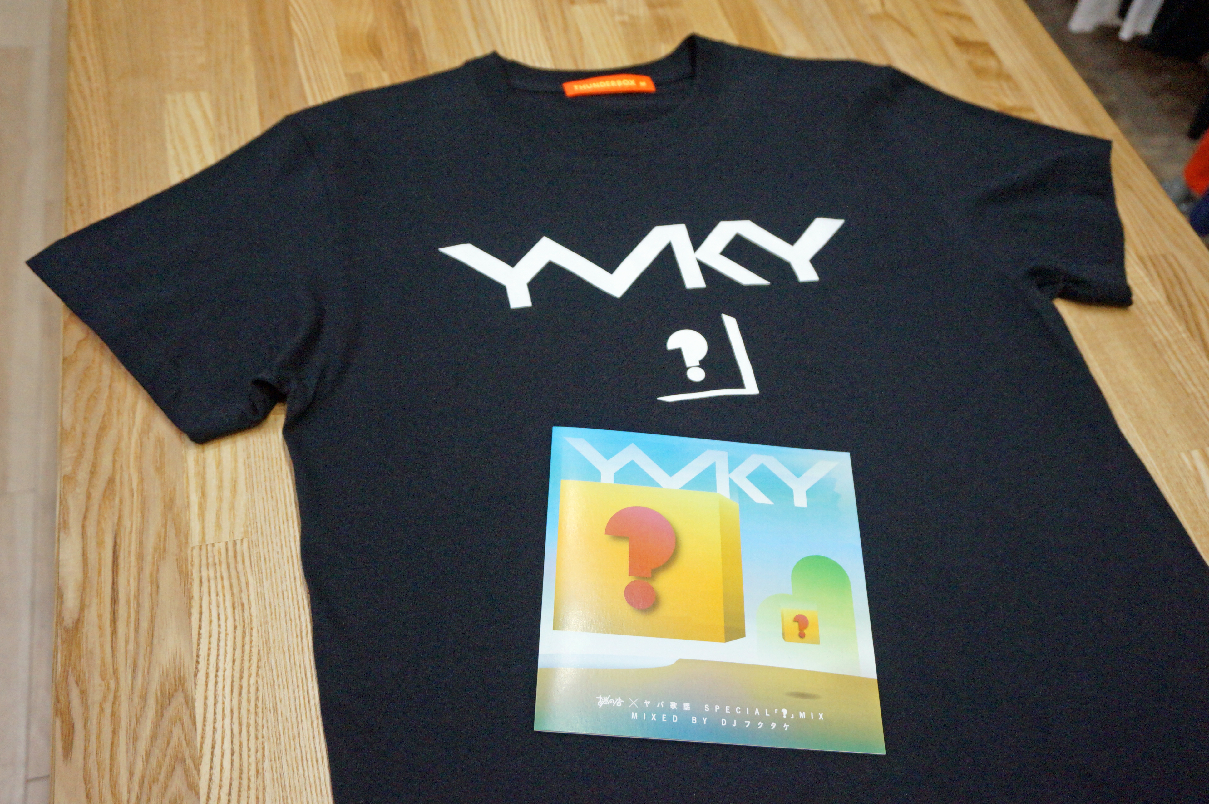 ▲コラボアイテムその2。「ヤバ歌謡=YVKY」Tシャツ。“?ボックス”がテーマでDJミックスCD-R付き