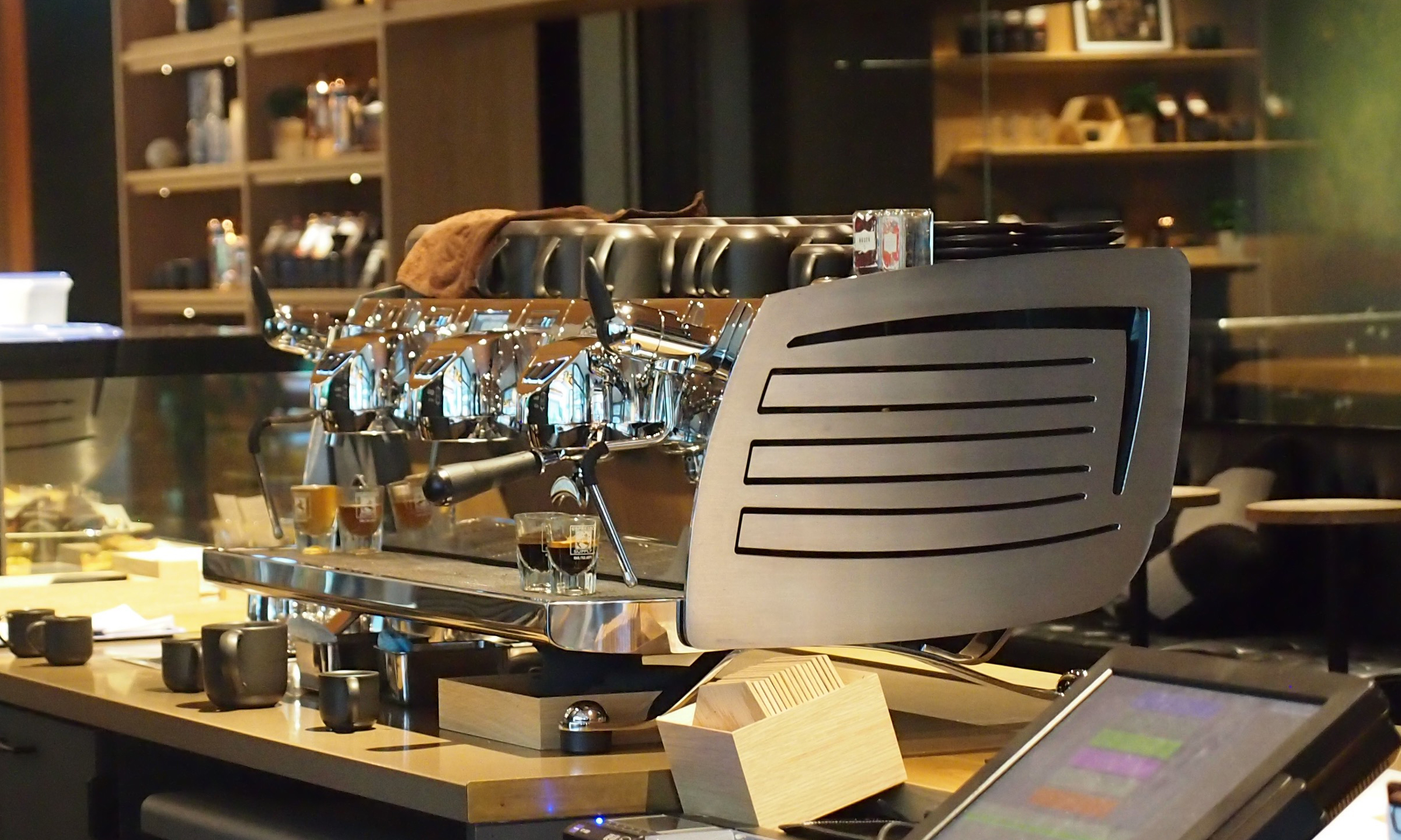 ▲東京ミッドタウン店では、エスプレッソマシーンに「ブラック イーグル」を使用。抽出作業はすべて手動で行われます。