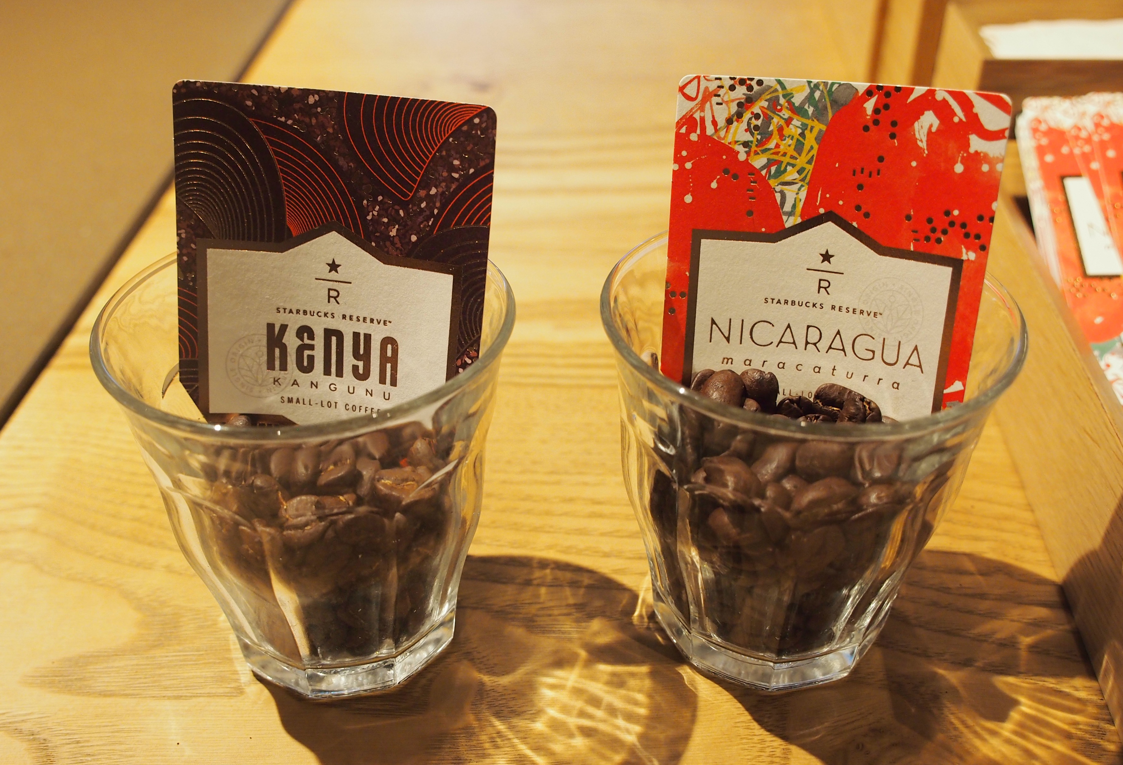 「STARBUCKS RESERVE(スターバックス リザーブ)」とは、スターバックスの中でも限られた店舗でしか取り扱いのない、希少性の高い豆のこと。東京ミッドタウン店の2階で楽しめるコーヒーは、すべてこのリザーブコーヒーを使用しています。取り扱う豆は季節によって変わり、常時5種類ほどが用意されています。