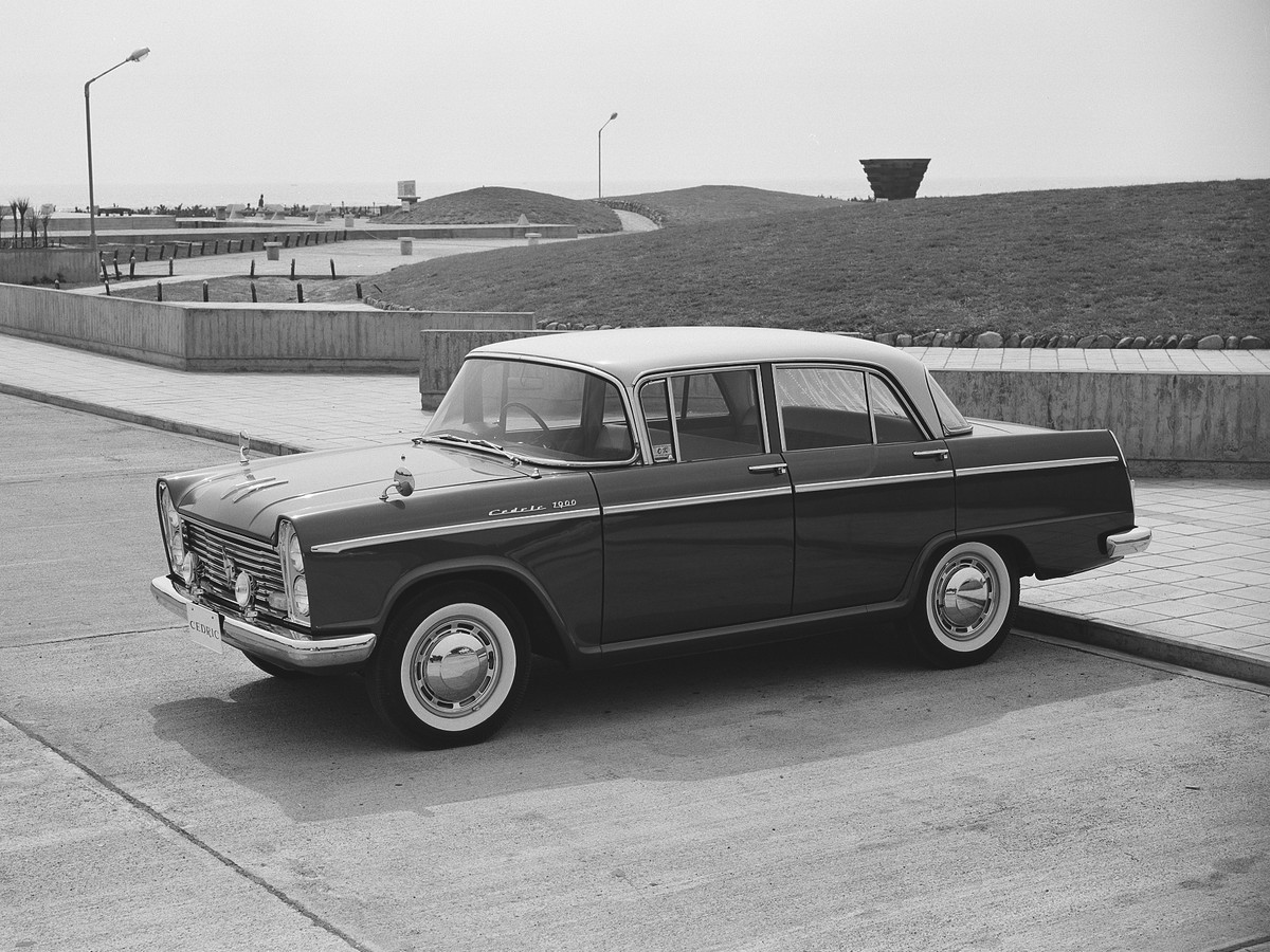 1960年にクラウンのライバルモデルという位置付けでデビューしたセドリック。日産オリジナル設計である高級セダンは、縦目4灯のフロントフェイスが印象的で、日産初となるモノコックボディを採用しています。