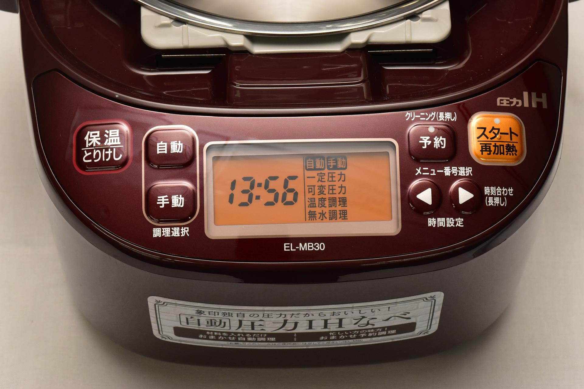 ▲煮込み自慢の操作部。一定圧力と可変圧力、温度調理(低温調理)に加えて、無水調理も可能になった。「予約」ボタンを長押しするとクリーニングもできる