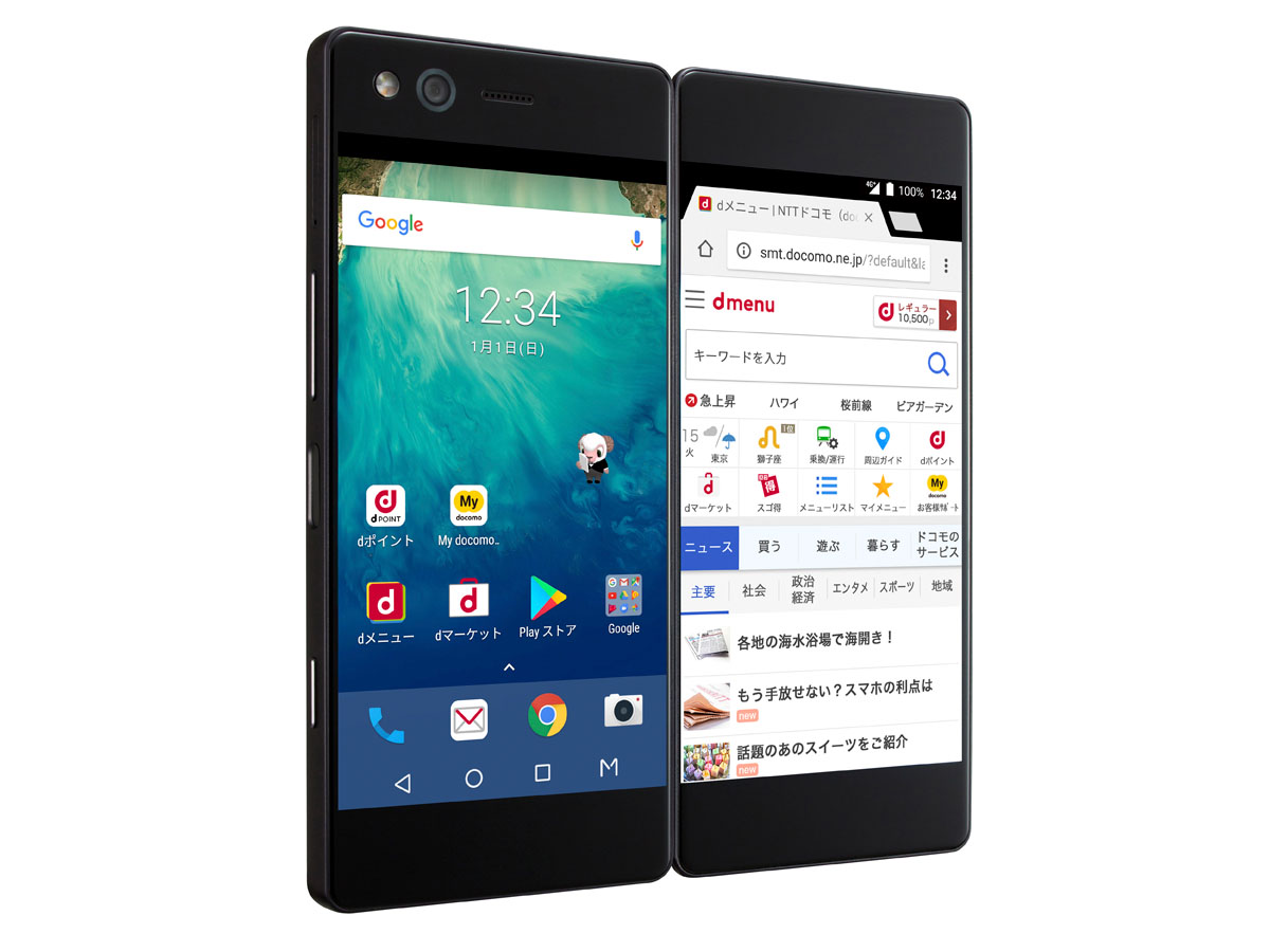 5.2インチのフルHDディスプレイを2枚装備。画面を広げてタブレットのように使ったり、別のアプリを表示させたりと、多彩な使い方が可能だ。明るいレンズや、2030 万画素と精細なメインカメラを内蔵する。重さは約230g