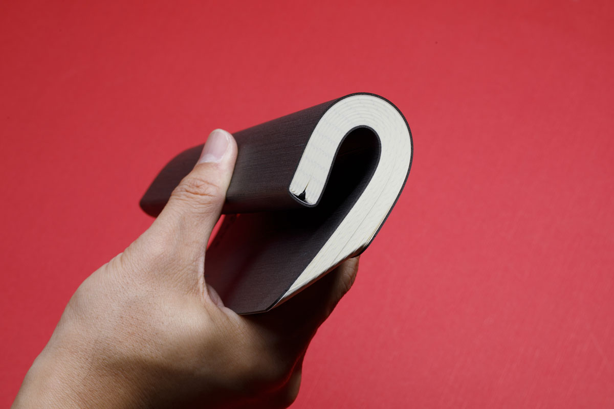 筆記用の紙として最高級の品質を誇るOKフールスを採用したノート。あくまでも書き心地を良くするための紙で、ツルツルもザラザラもし過ぎず、インクがにじむこともない。表紙はソフトカバーで新聞紙のように丸められ、手にもよく馴染む。W120×H210㎜/ 192ページ