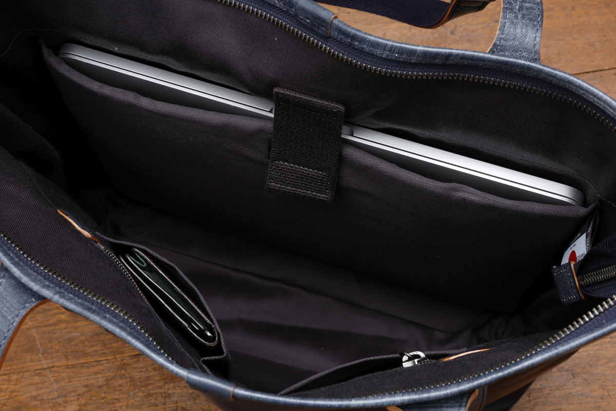 トートの魅力はガバッと開けて荷物を入れられることだが、用途に合わせたポケットがあればさらに使いやすい。PCが入るクッションポケットもそのひとつだろう。長めのハンドルがあればコートを着た冬場でも無理なく肩にかけられるなど、使い勝手も意識したい。