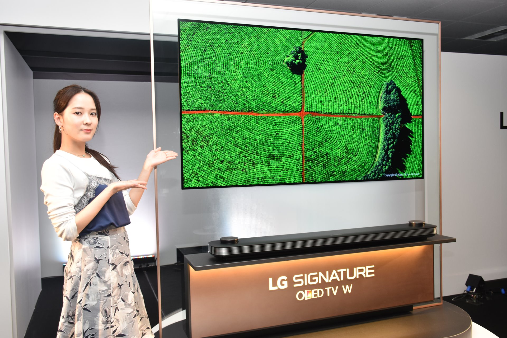 ▲LGエレクトロニクスが2017年5月に発売した4K有機ELテレビ「OLED65W7P」(実勢価格72万5000円前後)
