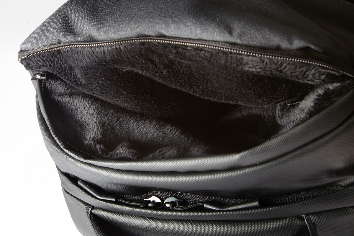 ▲メインコンパートメントは大きく開くので荷物を出し入れしやすい。PCポケットはないが、逆に自由度の高い使い方が可能に
