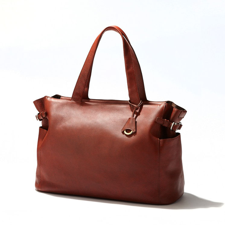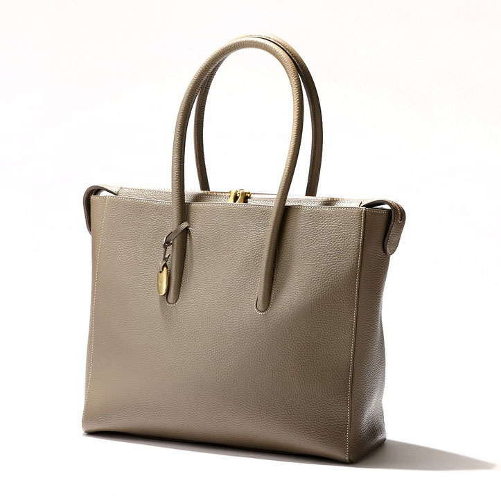▼品良く持てるシボ革トート