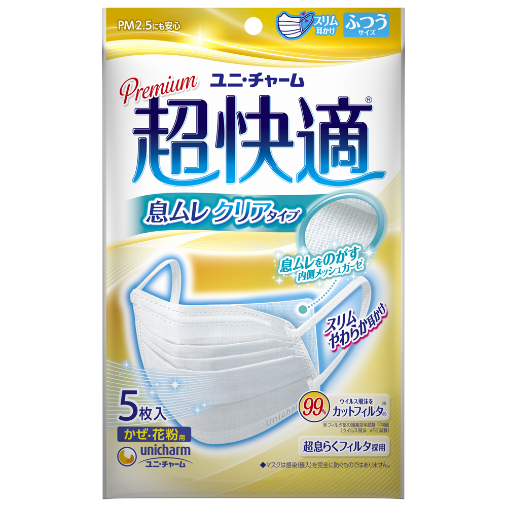 ▲「超快適マスク 息ムレクリアタイプ ふつうサイズ5枚入り」(実勢価格399円前後)