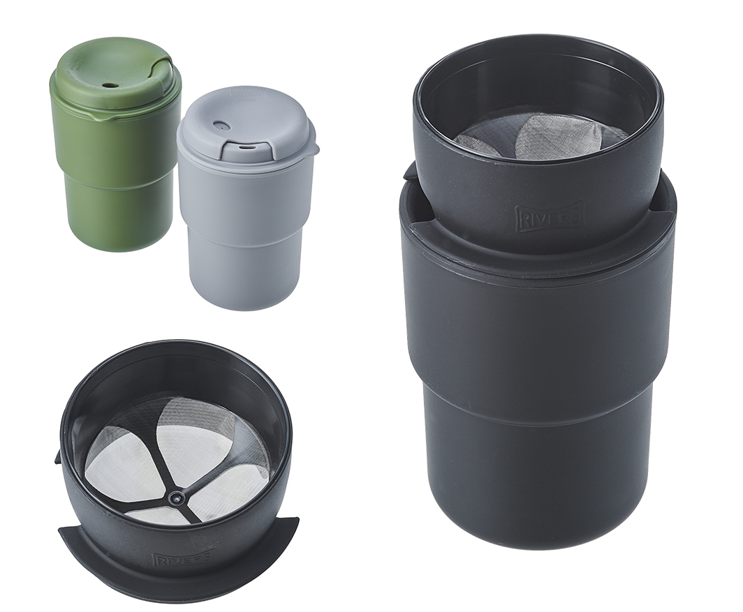 デザイン、カラー、質感のいずれもがどんぴしゃなカップ。飲み口に加え、ストロー穴が開けられている優しい気遣いもうれしい。超小型のマイクロコーヒードリッパーは、ホルダーがシリコン製でカップの中に収納できる。