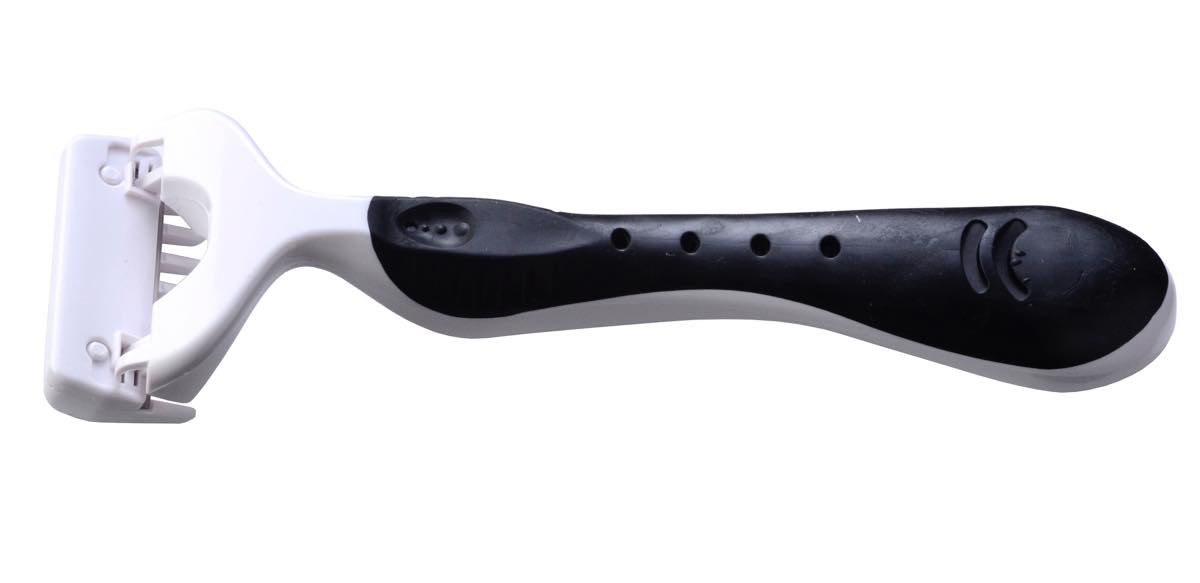 ▲使い方は刃を軽く肌に当てて、毛の流れに逆らうようにゆっくり動かすだけ。これで肌に優しい、なで剃りとなる