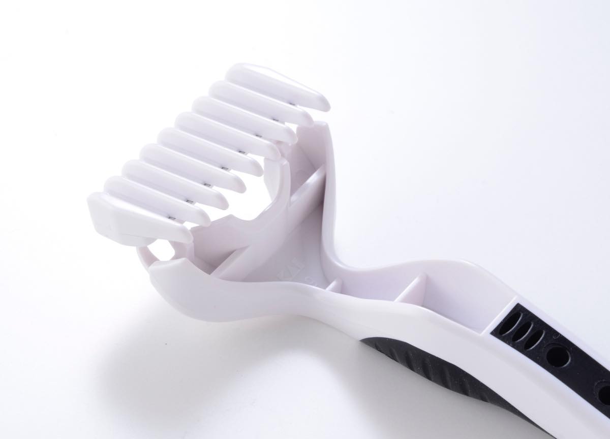 ▲刃の部分にはクシ状のトリマーを装着。自分で調節する必要もなく、簡単に約3mmの長さに揃えることが可能だ