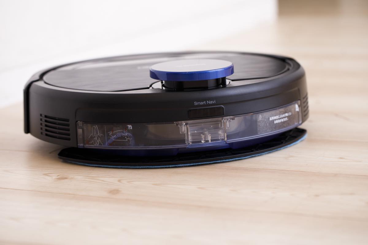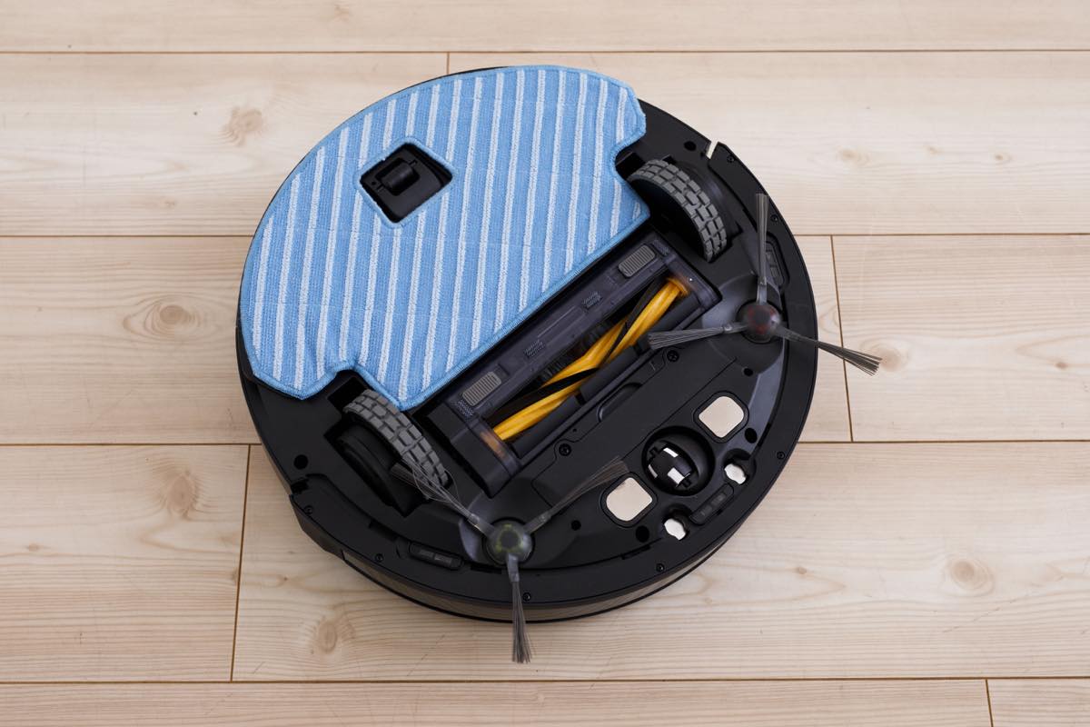 本体底面に“OZMOモップシステム”を取り付けることで、ゴミの吸引とともに床の拭き掃除が可能。ただし、事前に室内のマッピングをしておく必要があり、マッピングが完了するまで拭き掃除は対応しない点は要注意だ。ちなみに掃除時の走行音は静かで、生活しながらでも問題なく使えるレベル。
