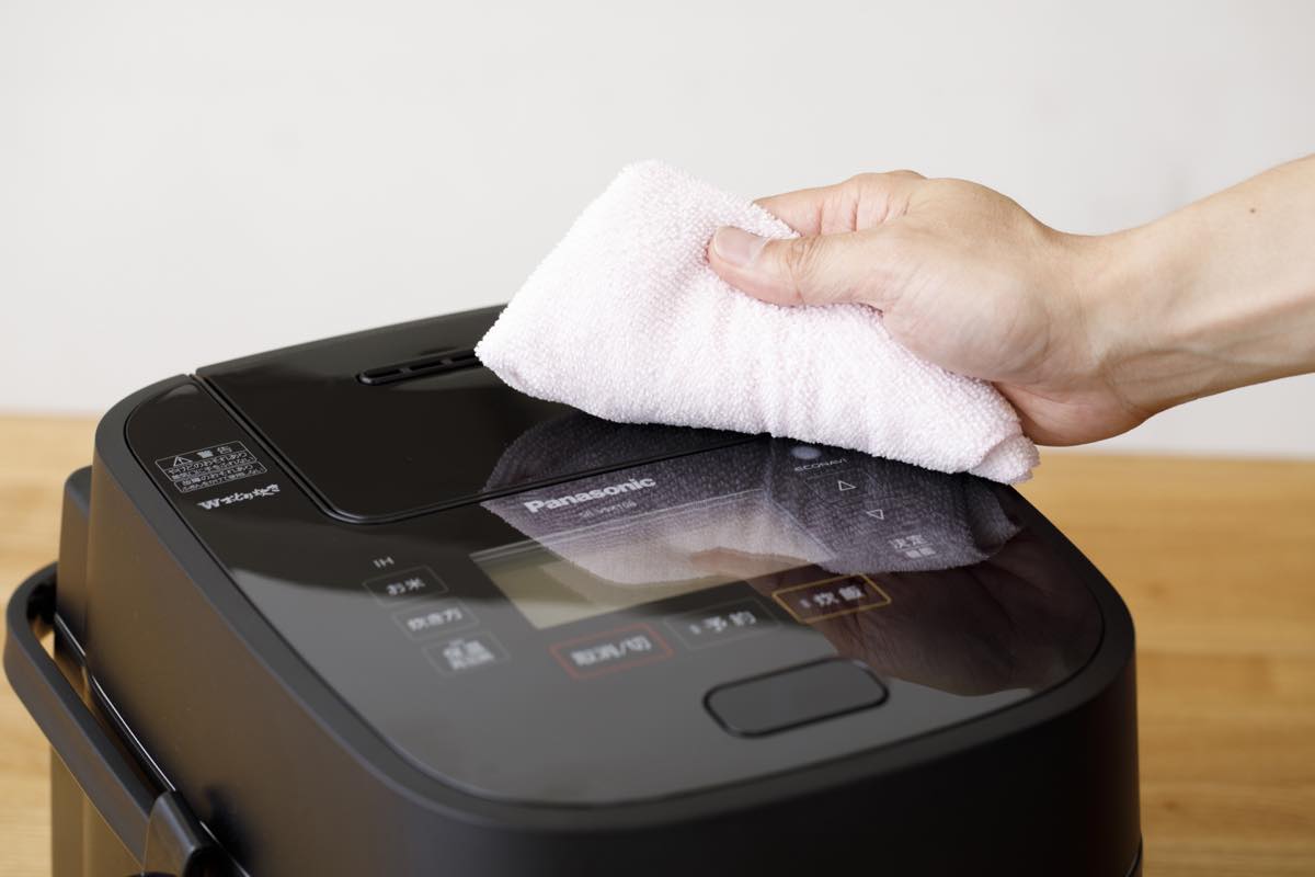 ▲本体内側の汚れやすい部分はステンレス製クリアフレームを採用。凹凸のない天面パネルとともに簡単に拭き掃除が可能だ。なお、内蓋には洗いにくい調圧ボールなどがなくサッと洗える