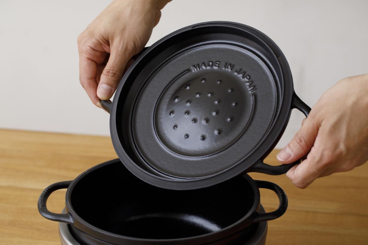 同社製の鋳物ホーロー鍋とポットヒーターを組み合わせてご飯が炊ける人気炊飯鍋の、コンパクトな3合炊きモデル。おかず調理に対応し、無水調理や低温調理もできる。