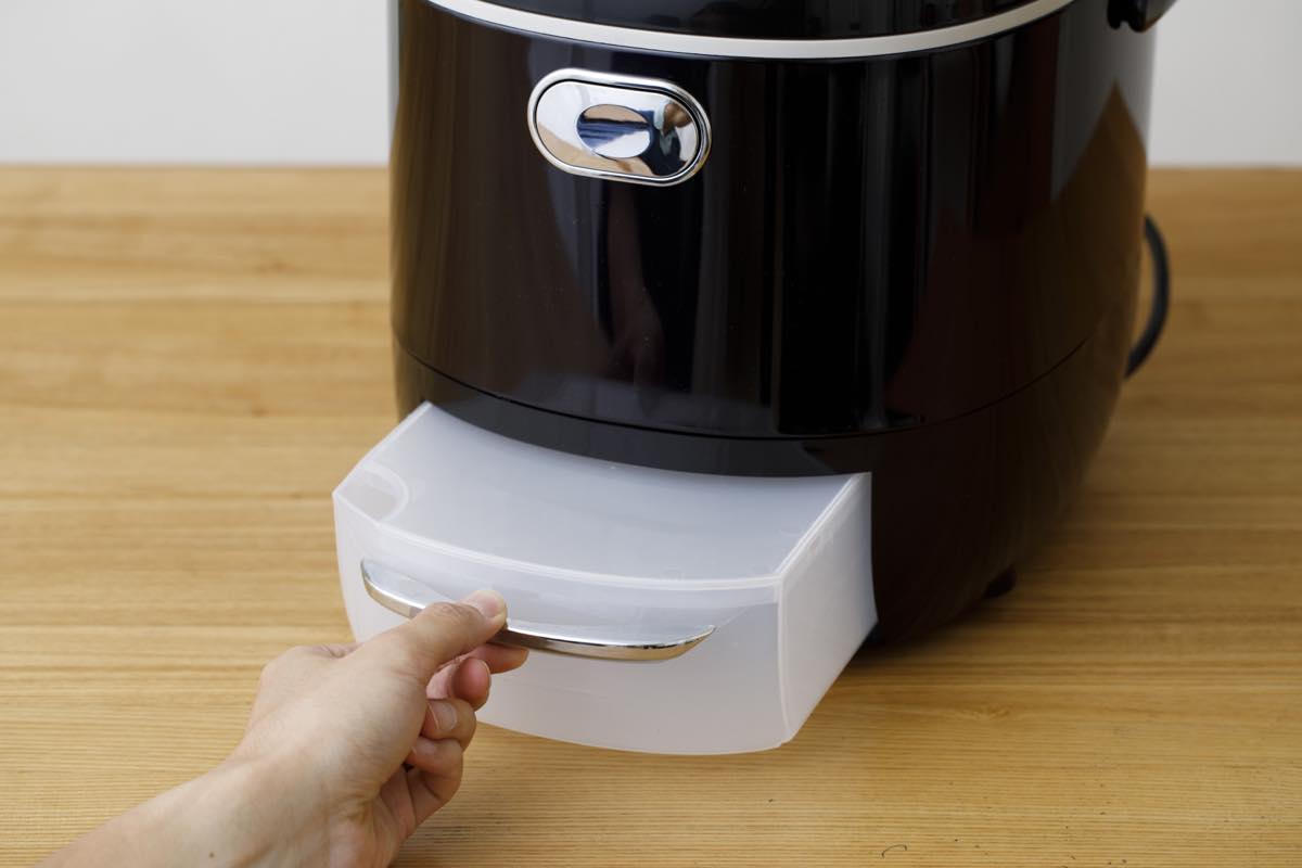 ▲本体下部に2分割されたタンクを搭載。あとで追加する水を格納するエリアと、 糖質が溶け出した水を排水するエリアに分かれている