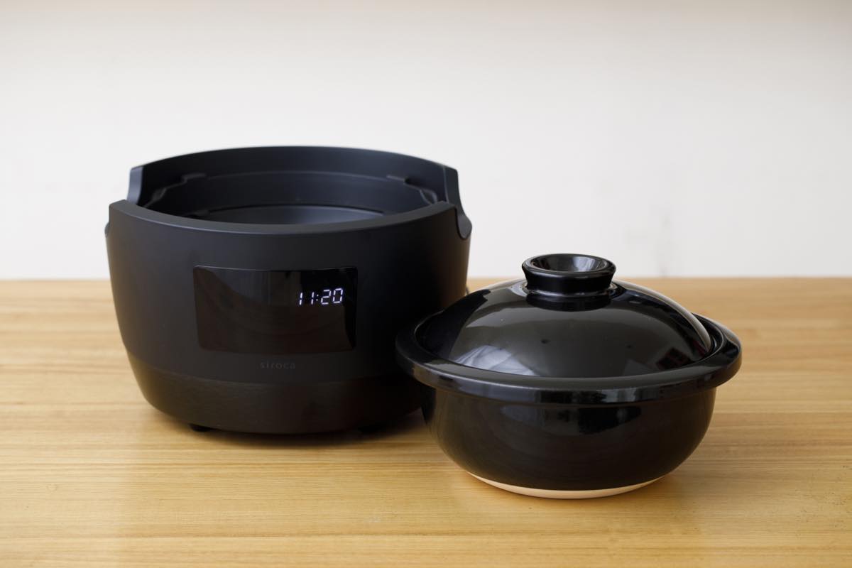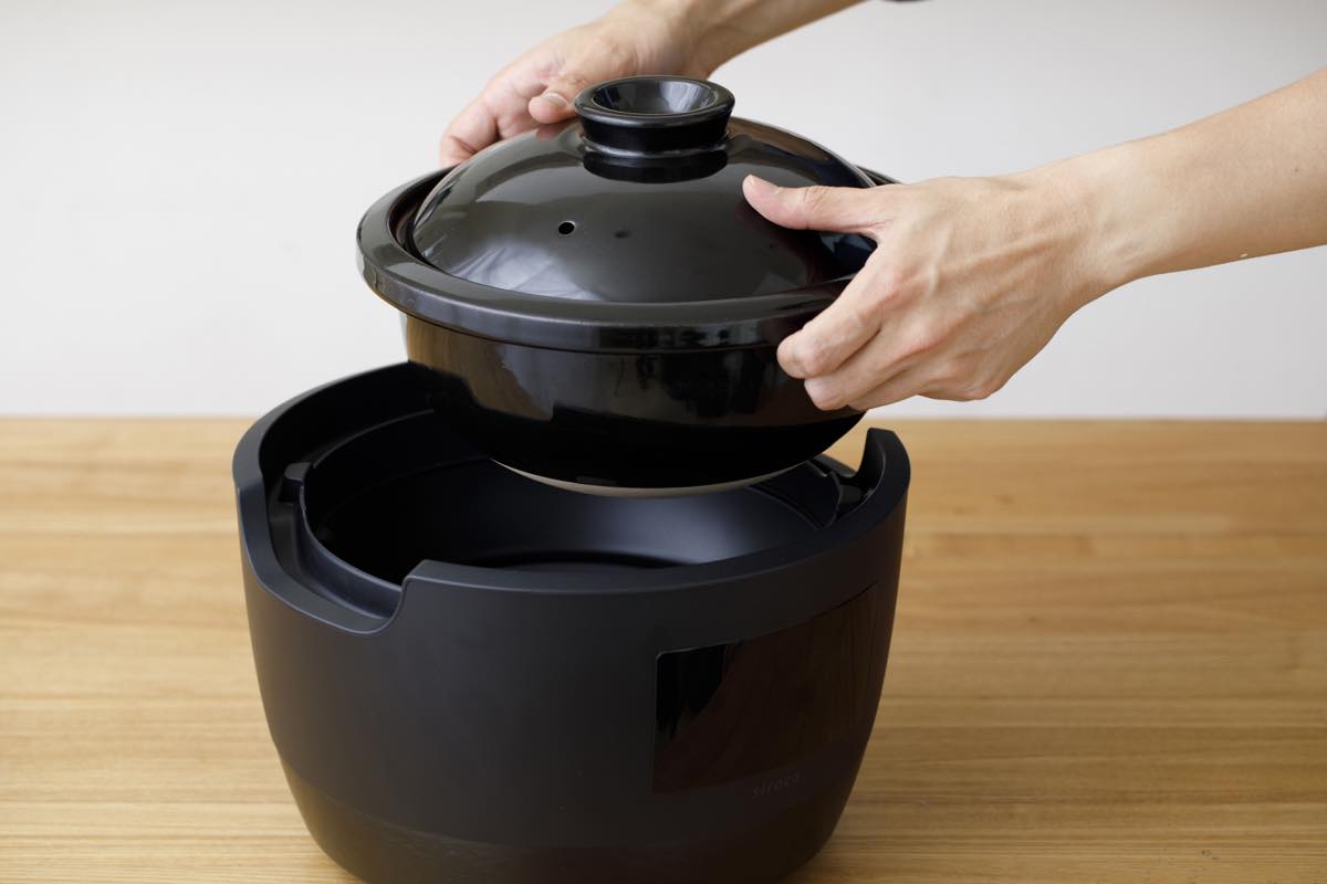 ご飯を炊くお釜として伊賀焼の土鍋、長谷園の「かまどさん」を採用した炊飯器。これまでガス火でしか使えなかった「かまどさん」を電気制御し、お米を炊けるようにした。