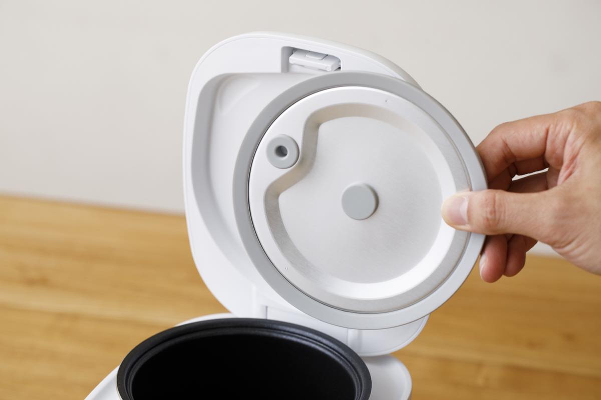 ▲内釜や内蓋はもちろん、内蓋のパッキンや外蓋上部の蒸気口まで取り外し可能。いずれも丸洗いして清潔に保てる。手入れしやすいのもポイント