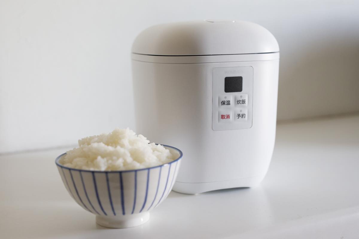 キッチンで置き場所を取らないのはもちろん、使っていない時は食器棚などにも収納できる、コンパクトサイズが特徴。 ひとり分の0.5合なら最短約15分で炊けるのも魅力だ。最大容量の1.5合の炊飯時間は約25分。ただし、この時間はほぼ吸水時間を取っていない。