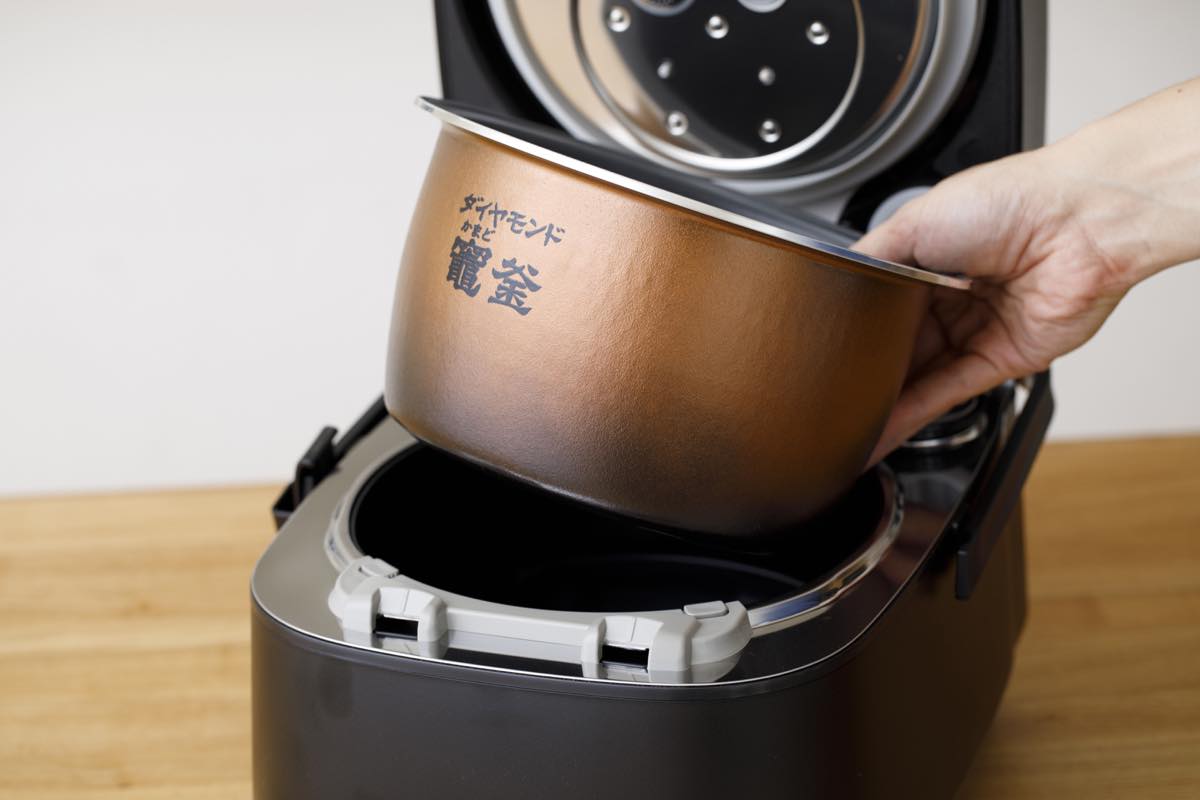 ▲内釜にはアルミやステンレス、セラミックスなどを組み合わせた“ダイヤモンド竈釜”を採用。内側には細かな泡を発生させるためのダイヤモンドプレミアムコートが施されている