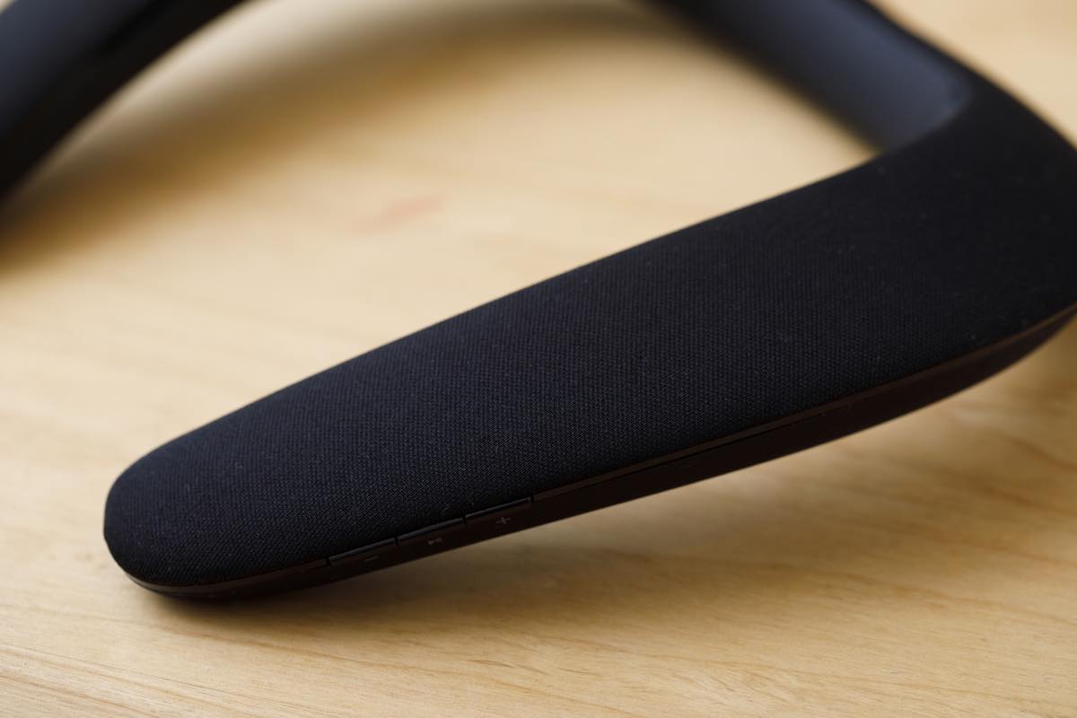 首元のスピーカーから顔に向けて自然と音が広がる。サウンドに包まれるような広がりは、今回試した中ではトップ。左右それぞれに搭載されたパッシブラジエーターで、首元にズンズンと振動が響く(3段階で調整可能)のも、映像体験をよりリッチにしてくれる。映画やゲームといった“映像モノ”中心のコンテンツにお勧めだ。