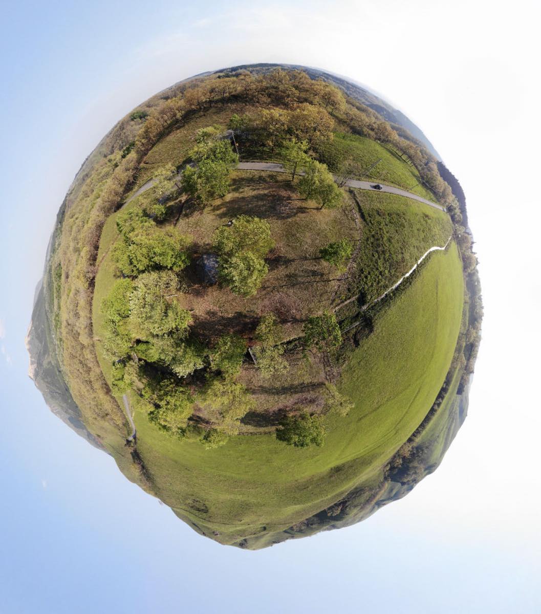 そんな「Mavic Air」で頻繁に利用しているのが、360度写真を撮影できる機能だ。「ドローンで360度写真?」と疑問を抱くかもしれないが、自分の好きな位置に飛ばして設定を360度写真のモード「アステロイド」にすると、ドローンが勝手に回転しながら上下や左右に自動で向きを変えながら、34枚の写真を撮影。それをアプリ内で合成し、360度写真を作ってくれるのだ。