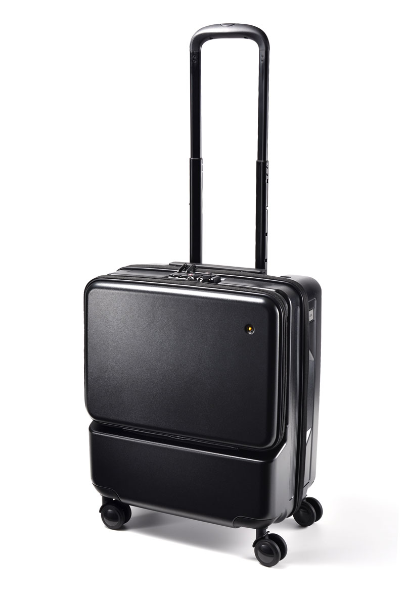 フロントポケット付きスーツケースは、PCや小物などを素早く取り出せることから人気が高い。そんな便利なポケットを着脱式にして、クラッチとして単体で使えるように設計。