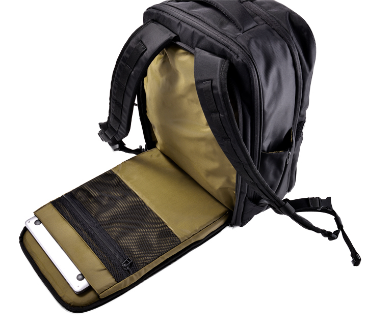 出張にも対応する大容量の2層式バックパック。大きく開く前面荷室は多彩なオーガナイザーを搭載。メイン室は2重構造になっており、着替えなどの荷物を目隠しして収納できる。