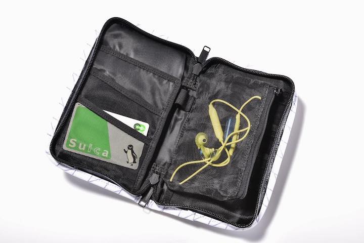 パスポートや地図などを収納できるトラベルポーチ。外装にはアウトドアバッグなどに用いられる素材「XPAC」を採用しており、軽くて丈夫。そして水に強いため安心して使える。