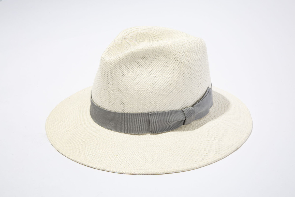 「CA4LA のパナマハットは、高さがあってつばが広いクラシカルな雰囲気です。ホワイトを選ぶことで全体の印象がよりクリーンな印象になりますね。素材はパナマ草(トキヤ草)と呼ばれる天然草のやわらかい部分を編み上げたモノ。風通しがよく、長時間被っていてもムレにくいので、夏にピッタリです」