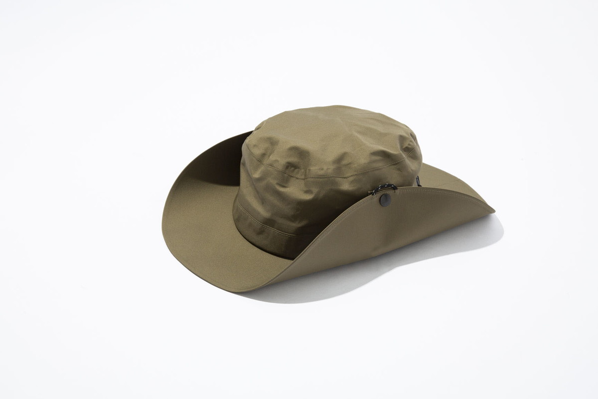「アウトドアブランドのアイテムは過酷な環境でも過ごせるように設計されているので、高機能なモノが多いんです。ペンフィールドのハットは2.5レイヤーの防水・透湿素材、内側の滑りには吸汗・速乾素材を使うなど、夏には嬉しい機能がてんこ盛りです。さらにストレッチ性のある素材なのでストレスなく被れます」