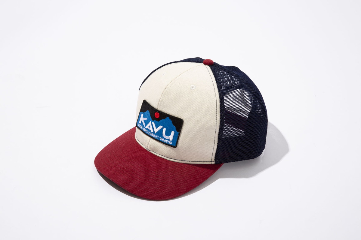 「日本のハットメーカー、CA4LAと、1990年代に一躍時のブランドになったアメリカのアウトドアブランド、KAVUとのコラボキャップです。フロントに“KAVU”のロゴワッペンを飾ったシンプルなメッシュキャップは’90年代を彷彿させるアメカジテイスト。このロゴ、OVER30の人であれば反応する人がいるのではないでしょうか」
