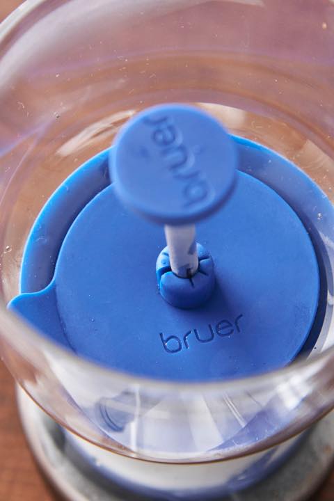 コーヒー粉の上からペーパーフィルターを載せ、水で湿らせる。バルブでドリップ速度のコントロールが可能。味の好みに合わせて最短3時間、最長12時間まで調整できるが、約6時間(1秒に1滴)がおすすめ。バルブを時計回りにひねるほど遅くなる。