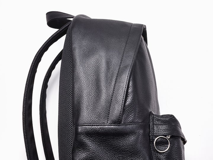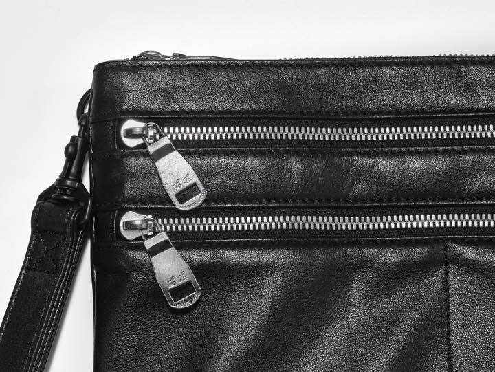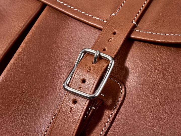 数日間かけてオイルを浸透させたヨーロッパ産牛ステアは、革の状態を確認した後に仕上げの作業に入るという、時間と手間をかけた作りをしている。休日や旅行のときに持ち歩く物を入れるのに便利だ。サイズ:W210×H300×D100mm