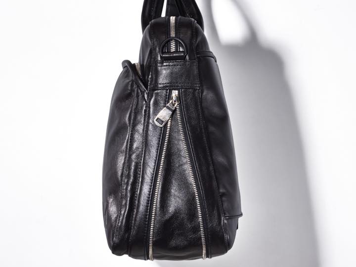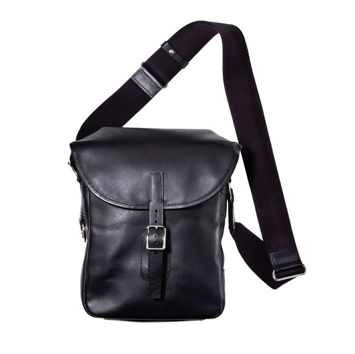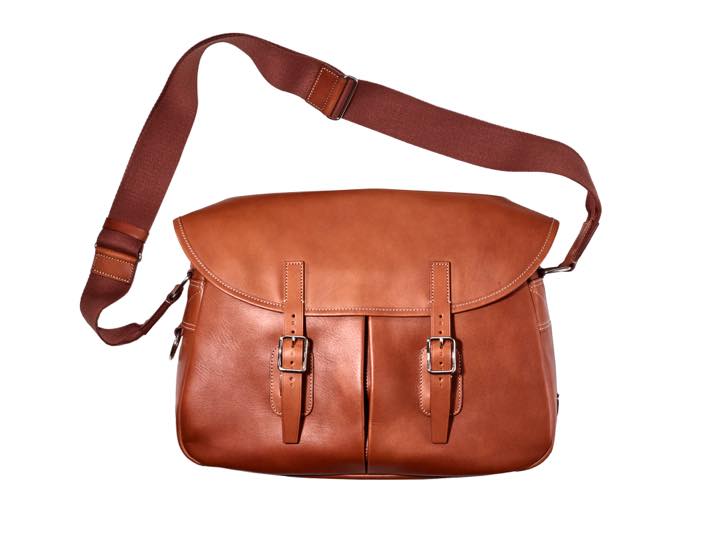 フライフィッシングなどに使われるバッグをベースにしたデザイン。均等にオイルを塗り込み、染み込ませたレザーは、使い込むほどに艶を増し、年月によって変化していくのを楽しめる。サイズ:W380×H270×D110mm
